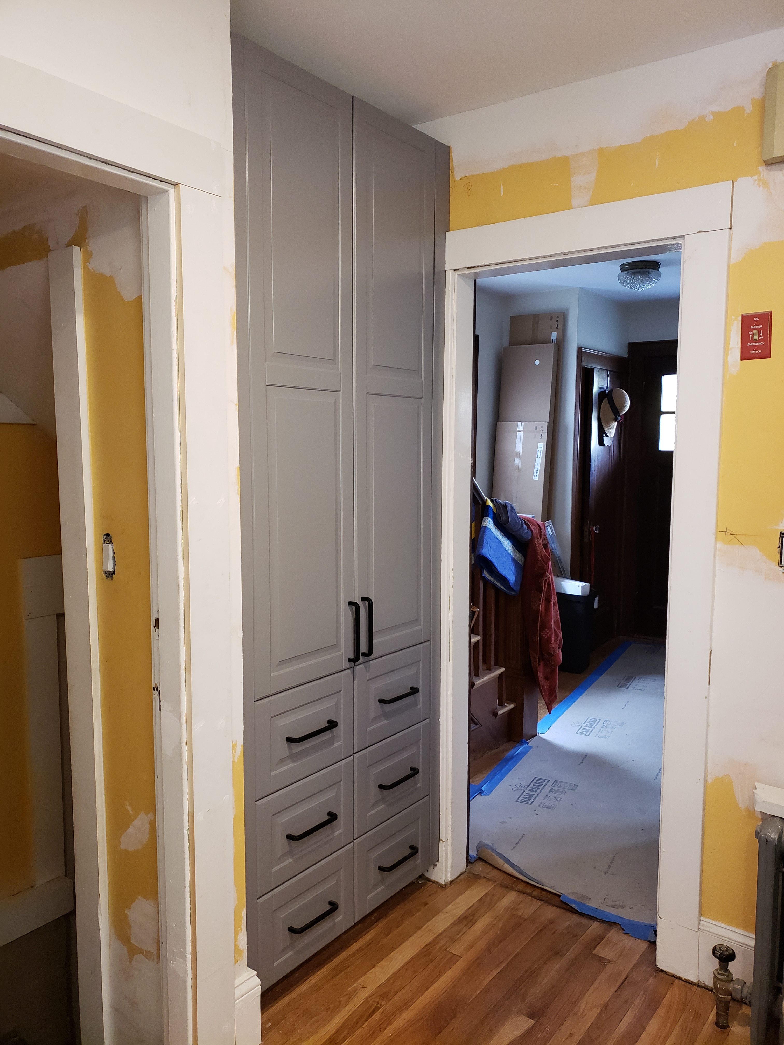 - Parsonage Kitchen – view of doorway to front entrance, pantry storage