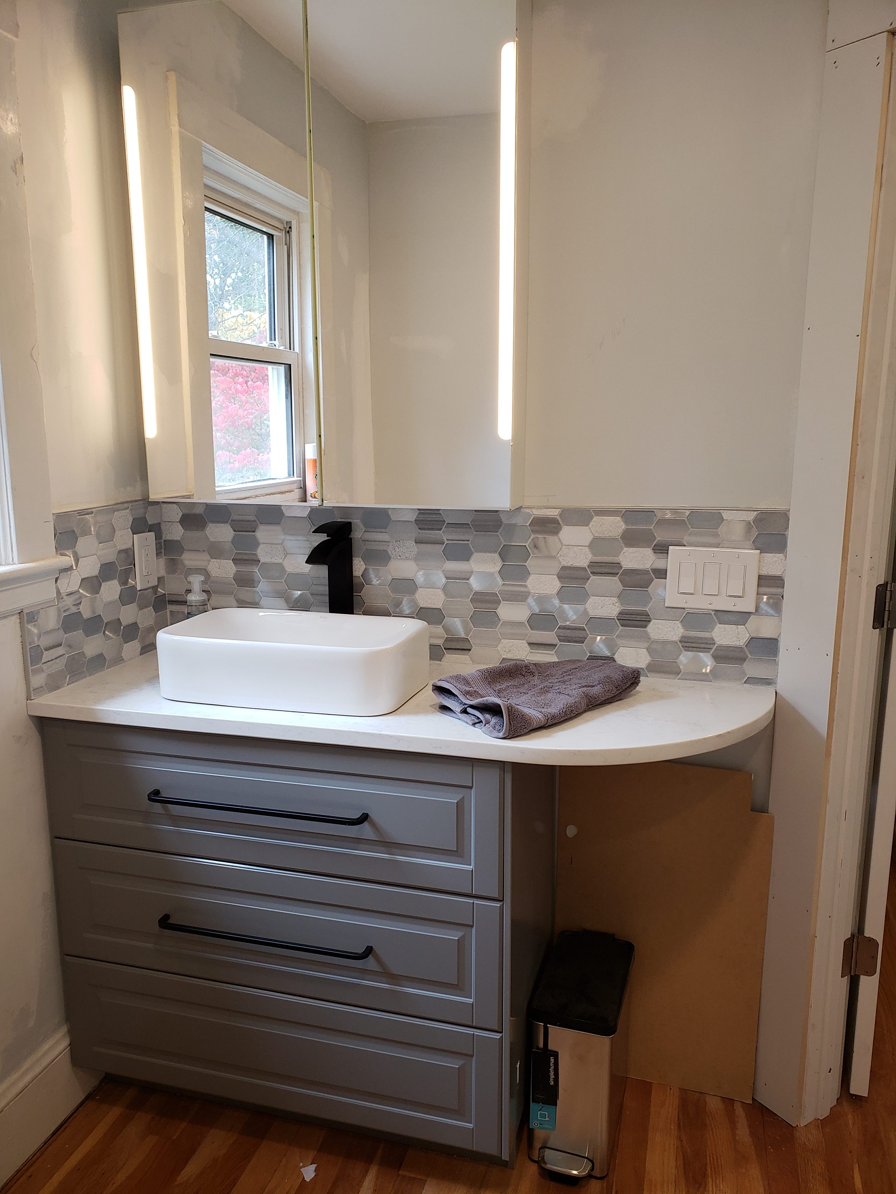 - Parsonage New Bath – sink, cabinets, countertop backsplash to match kitchen